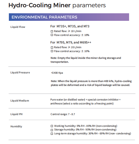 The MicroBT WhatsMiner M73S+ Hydro-cooling is engineered for professional Bitcoinmining with SHA-256 efficiency. lt offers a peakhashrate of 470~526TH/s while consuming only 7200W, achieving an energy efficiency of 14.5 J/TH. lts advanced hydro cooling systemensures optimal temperature management, lownoise, and continuous reliable performance.making it ideal for large mining farms seekinghigh stability and longevity.